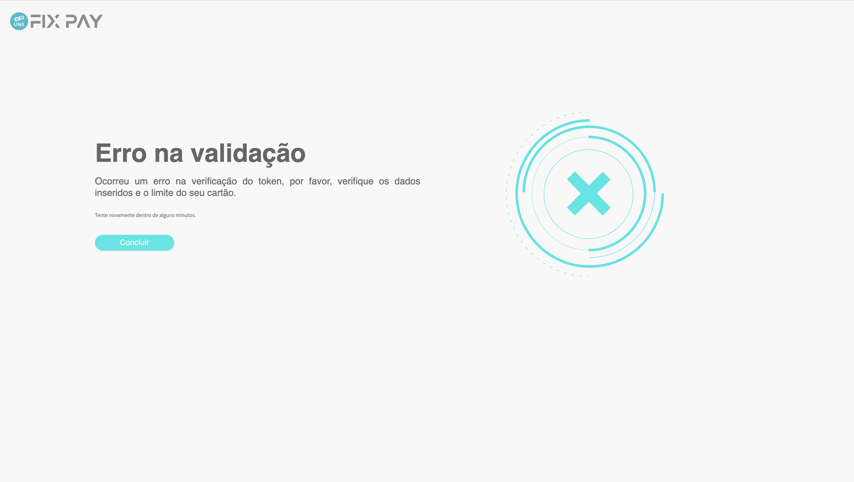 Exemplo de tela de falha e sucesso na validação da cobrança: